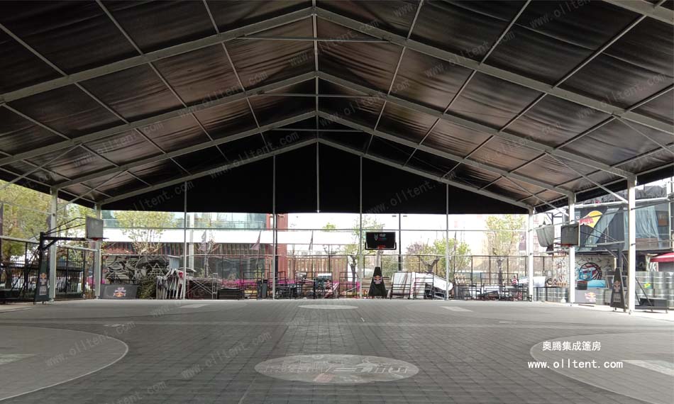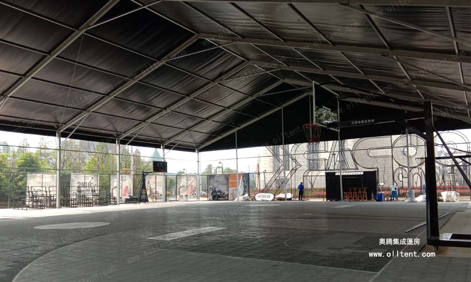如今國家大力提倡綠色環保,奧騰室內籃球館篷房始終貫徹低碳環保概念,從安裝到應用全程無噪音,更重要的是它整個結構是模塊化設計,結構非常有規律且具備互換性,能夠在短時間內快速完成搭建,在這個三人體育館篷房現場用完以后,還可百分百拆卸換到另外一個地方重復搭建。這也是各大活動舉辦方一直追求的靈活場所。